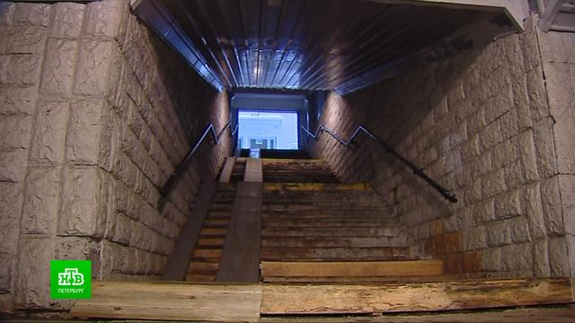 Теперь остался только один официальный путь. Сделав крюк через всю платформу (как говорят жители, в итоге получится целых полтора километра), нужно спуститься в подземный туннель. Три пролета, крутая лестница и атмосфера из психологического триллера — некоторые пенсионеры вообще опасаются здесь ходить, чтобы ненароком не упасть, отмечает корреспондент НТВ Эдмунд Желбунов.