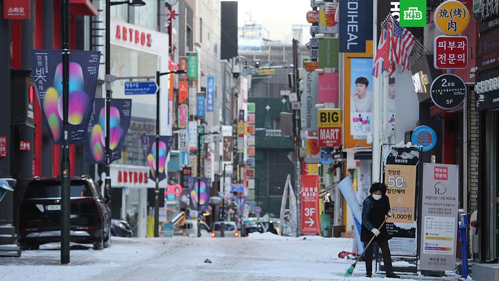 В Южной Корее рекордные снегопады. Из-за них отменяют занятия в школах. 700 машин застряли в сугробах, 66 человек пострадали в авариях.