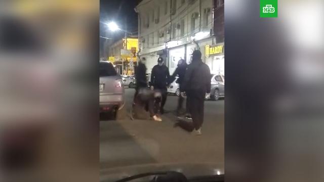 На кадрах, появившихся в соцсетях, видно, как несколько мужчин подошли к иномарке, остановившейся на дороге. Парни били и пинали ногами кавказцев, танцевавших лезгинку на проезжей части, а затем один из участников драки использовал перцовый баллончик.