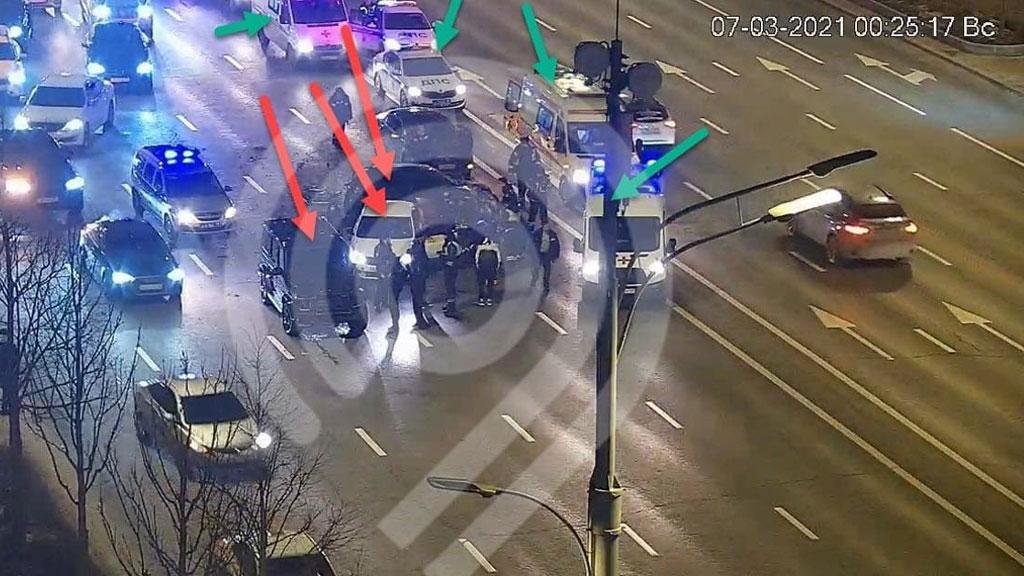 В ночь на воскресенье три автомобиля столкнулись на Смоленском бульваре в районе дома 19. По предварительным данным, пострадали 4 человека. Столкнулись автомобиль такси, Mercedes Gelandewagen и еще одна иномарка. Источники в экстренных службах сообщают, что водитель одного из автомобилей устроил драку с сотрудником полиции.
