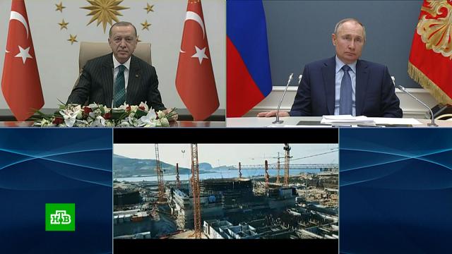 Владимир Путин и Реджеп Тайип Эрдоган дали старт закладке фундамента третьего блока атомной электростанции «Аккую», которую возводят в Турции при участии госкорпорации «Росатом».