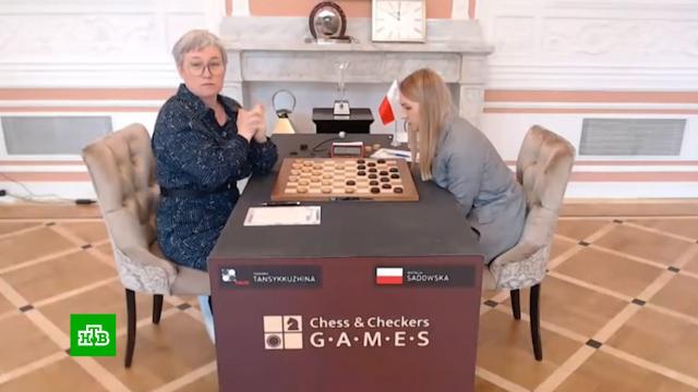 В Варшаве, где сейчас проходит финальный матч чемпионата по шашкам, произошел скандальный и очень некрасивый инцидент, попавший в объективы телекамер. За корону сражаются действующая чемпионка, россиянка Тамара Тансыккужина, и представительница Польши Наталья Садовская. Прямо во время поединка главный судья и организатор матча отклеил стикер с именем российской спортсменки и убрал стоящий на столе триколор. Партия завершилась поражением россиянки.
