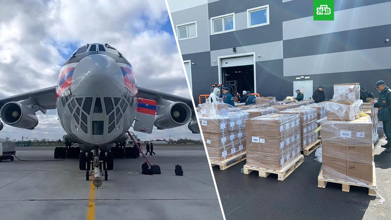 Первый из двух самолетов МЧС России с гуманитарной помощью приземлился в Нью-Дели .