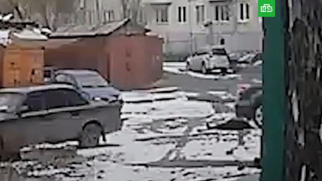В Архангельске во дворе жилого дома неизвестный избил мужчину, после чего его два раза переехал автомобиль. Инцидент попал на видео.