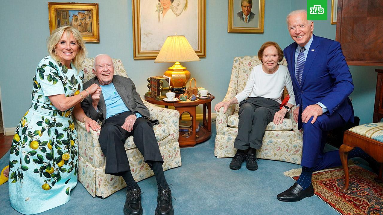 Странная фотография нынешнего главы Белого дома Джо Байдена и его супруги в гостях у 39-го президента США Джимми Картера насмешила пользователей Сети и стала интернет-мемом .