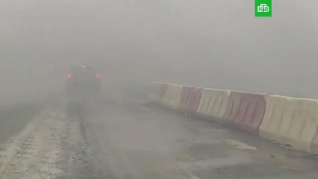 Одну из трасс в Курганской области накрыло сильным смогом из-за лесных пожаров. Видео с места записали автовладельцы, проезжающие по дороге.
