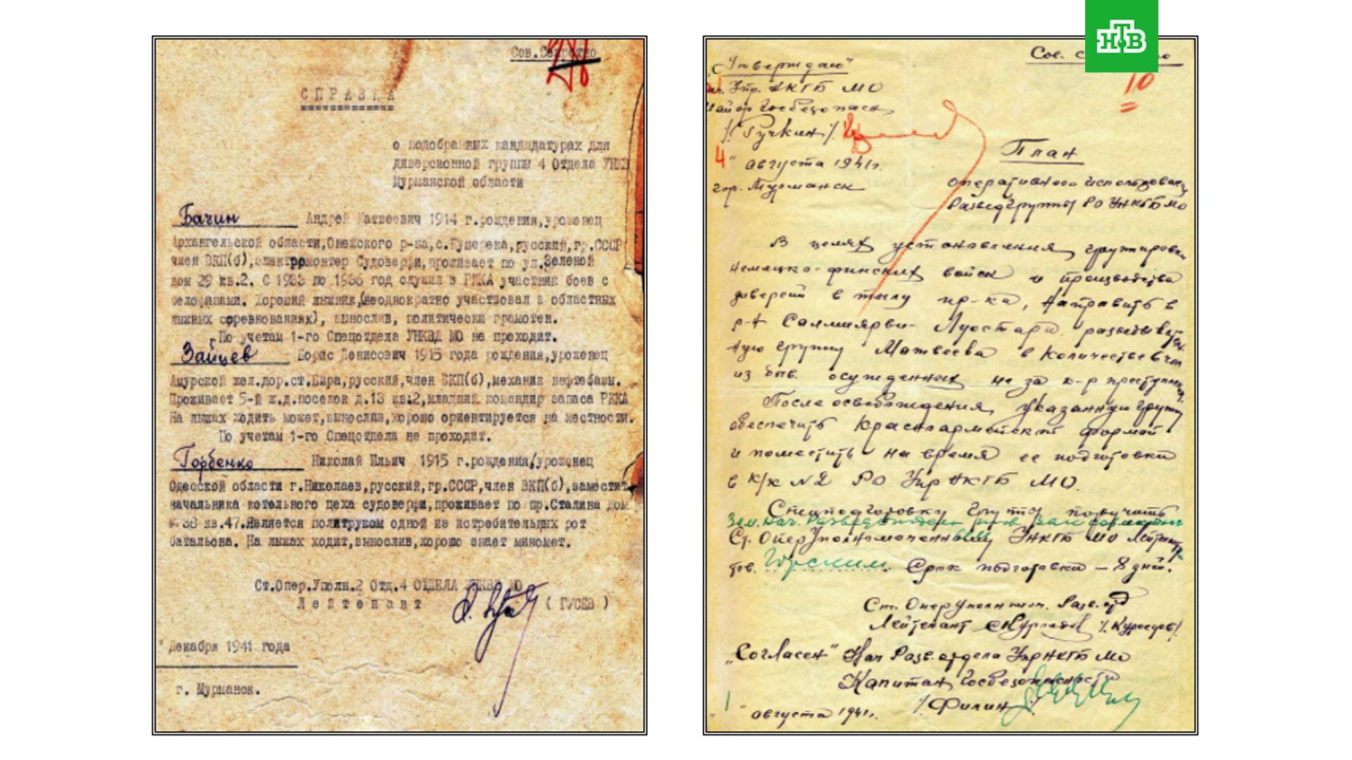 Среди опубликованных документов — план операции, в рамках которой отряд должен был установить месторасположение базы финского батальона, уничтожить ее, а также взять в плен несколько охранников и допросить их. Другая операция, план которой также был обнародован, предполагала организацию засады на дороге в тылу противника и уничтожение транспорта, грузов и живой силы противника. Кроме того, диверсанты должны были захватить документы и легкое вооружение.
