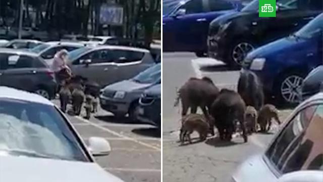 Стая кабанов окружила женщину, которая вышла с продуктами из супермаркета в Формелло. Итальянка была вынуждена бросить пакеты.