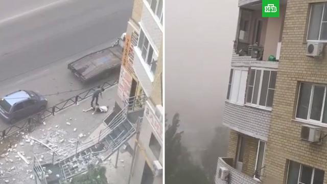 Пыльная буря, накрывшая сегодня Астрахань, снесла балкон квартиры в многоэтажном доме. Последствия ЧП попали на видео.