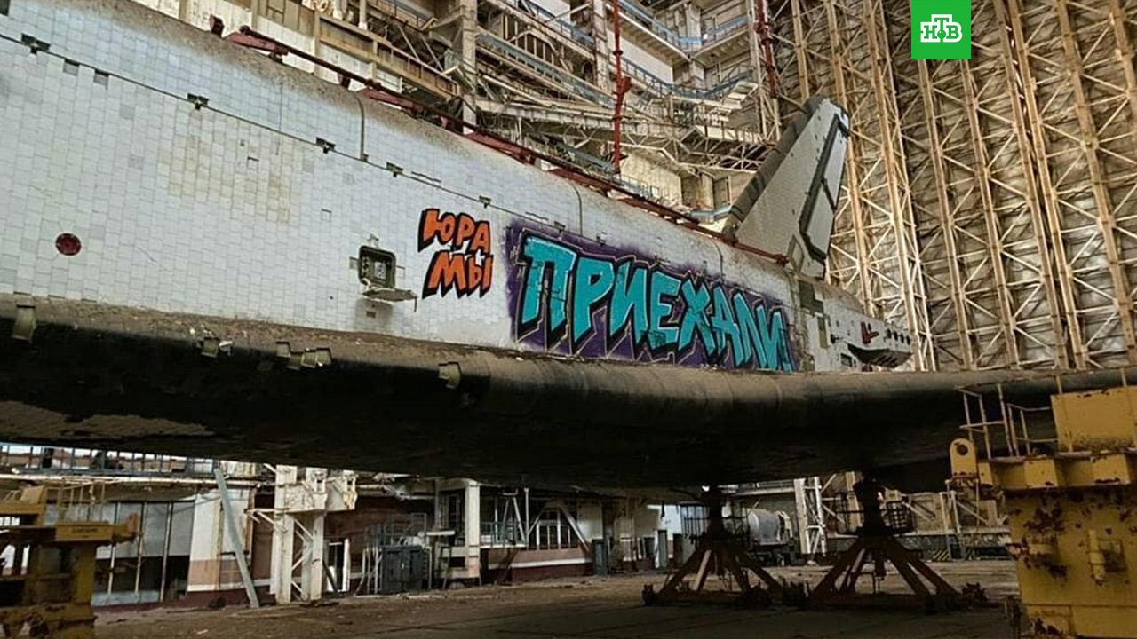 Группа уличных художников проникла в монтажно-заправочный комплекс космодрома Байконур и разрисовала граффити недостроенный космический челнок «Буран».
