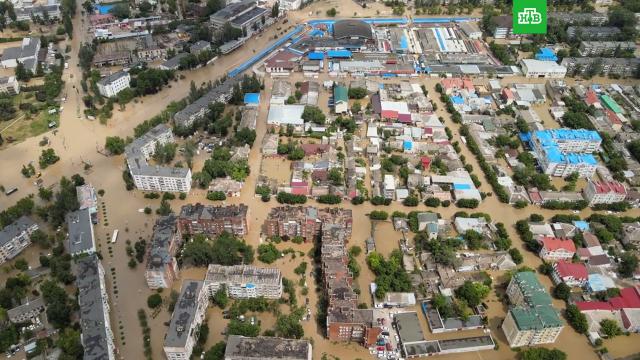 Город Керчь, затопленный мощными ночными ливнями, сняли на видео с высоты. Кадры появились в Сети.