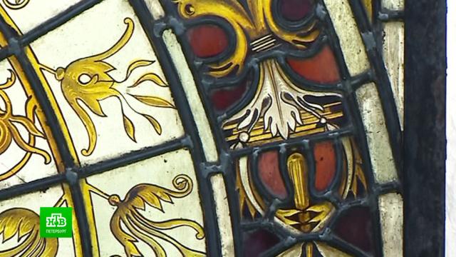 В здании бывшей англиканской церкви, переданной под концертный зал театру «Мюзик-Холл» , описывают найденные там витражи. Это уникальный ансамбль из 15 стеклянных композиций чудом пережил революции, войны, десятки лет он был скрыт от посторонних глаз.