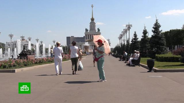 Изнуряющая жара продержится в Москве до выходных. В субботу синоптики обещают освежающие ливни с грозами и понижение температуры до 25 градусов тепла.