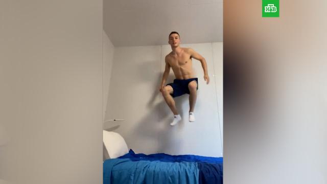 Ирландец Рис Джошуа Маккленаган опубликовал в своем Twitter видео, на котором он прыгает на кровати в своем номере и называет фейком сообщения о том, что кровати специально сделали хрупкими, чтобы избежать «ненужных форм физической близости» в период пандемии коронавируса.