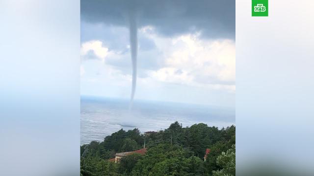 Смерч прошел над Чёрным морем у берегов Сочи сегодня утром. Происходящее на видео сняли туристы.