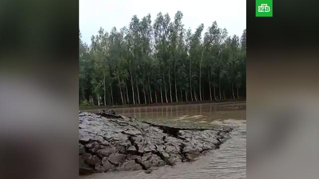 Жители Индии стали свидетелями странного природного явления. Ни их глазах огромный пласт земли поднялся из воды.