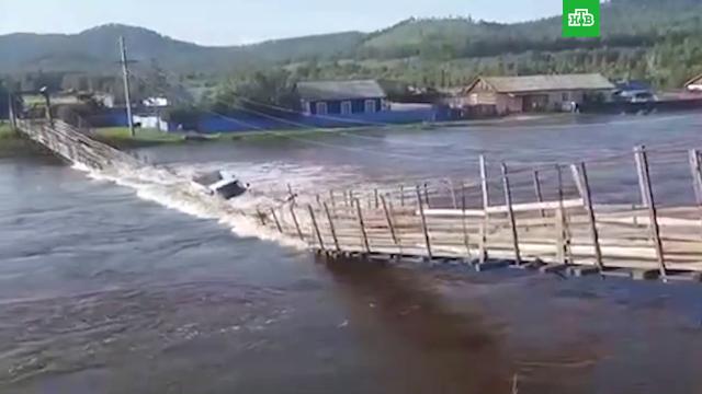 Подвесной мост в селе Урюм Забайкальского края лопнул в тот момент, когда по нему проезжал небольшой грузовик. Инцидент сняли на видео очевидцы.