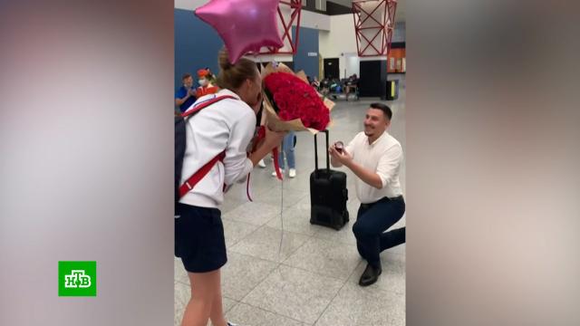 Прямо в зале прилета спортсмены устроили импровизированную