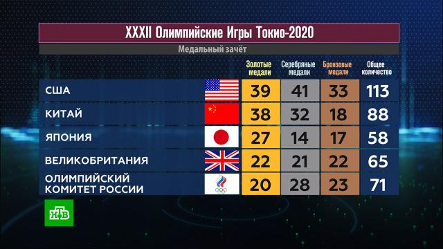 В активе у российской команды по итогам Олимпиады в Токио 20 золотых, 28 серебряных и 23 бронзовые медали.