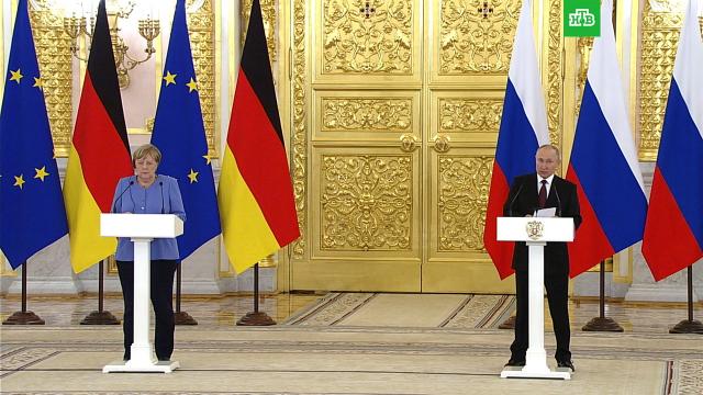 В Кремле Владимир Путин встретил канцлера с букетом цветов. И отметил, что, несмотря на сложности, в том числе связанные с пандемией, сейчас экономическое сотрудничество между странами укрепляется и товарооборот растет.