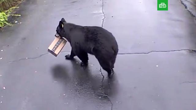 Не обнаружив посылку на крыльце, Кристин Левин и ее муж Адам решили посмотреть камеры видеонаблюдения и выяснили, что коробку унес в зубах крупный черный медведь.