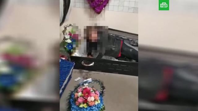 В региональном МВД сообщили, что нетрезвый молодой человек разбил стекла в салоне, проник внутрь, лег в один из гробов и уснул в нем. Его разбудили прибывшие на место полицейские.