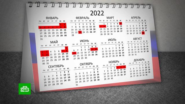 Новогодние выходные продлятся с 31 декабря 2021 года по 9 января 2022 года. Выходные дни в субботу, 1 января, и воскресенье, 2 января, совпадающие с нерабочими праздничными днями, будут перенесены на 3 мая и 10 мая соответственно. Таким образом, в период майских праздников россиян ждут двойные четырехдневные выходные — с 30 апреля по 3 мая и с 7 по 10 мая.