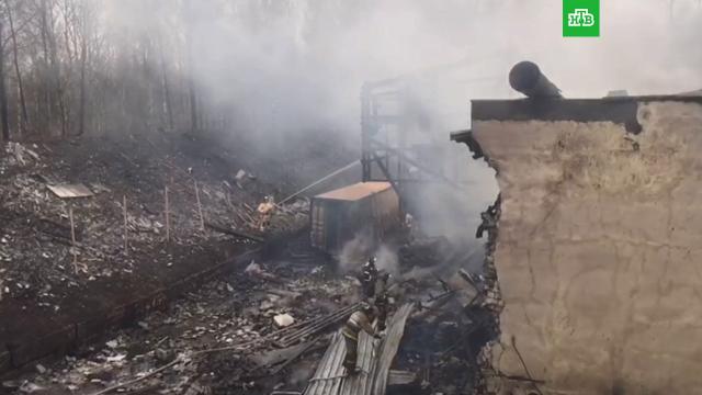 В ролике видно, как спасатели разбирают тлеющие завалы порохового цеха, в котором произошел взрыв. От здания практически ничего не осталось.