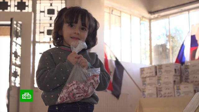 Вкус российской сгущенки, знакомый каждому жителю нашей страны, стал любимым и у сирийских детей, для которых сладости сейчас настоящий праздник. Воспитанники приюта для сирот в провинции Алеппо получили гуманитарную помощь от российских военных. Посылки прилетели из далекой Сибири, где сейчас лежит снег. Его сирийские дети видели его разве что по телевизору. Зато сибирское тепло ощущается даже на расстоянии.