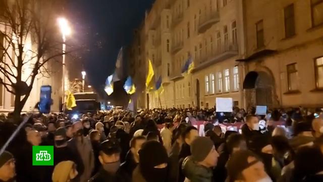 На демонстрацию вышли в основном сторонники бывшего президента страны Петра Порошенко. Они потребовали отправить в отставку Владимира Зеленского, а затем направились к его офису. Там их встретили силовики. Начались потасовки. Участники митинга пытались прорвать кордон, но безуспешно.