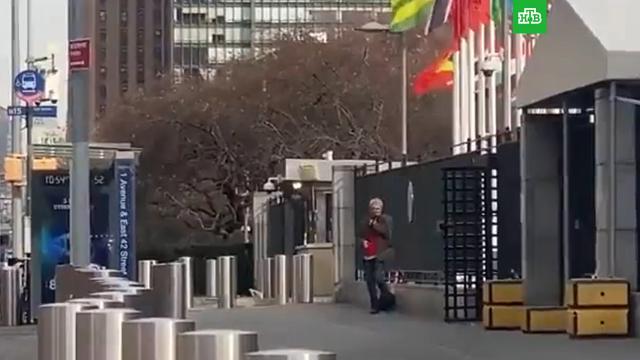 Мужчина с дробовиком стоял у здания ООН и не выдвигал