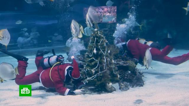 Все это происходило на глазах восторженных посетителей и в компании многочисленных обитателей искусственного водоема. Среди них были и довольно крупные акулы. Соседство с акулами подводникам не помешало, они успешно справились с задачей. Рождественская ёлка будет украшать аквариум до конца зимних праздников.