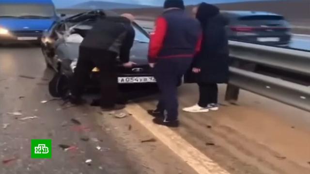 Массовое ДТП произошло на трассе «Таврида» в Крыму. Там на участке между Симферополем и Бахчисараем столкнулись больше 10 машин.