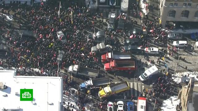 Режим чрезвычайного положения объявили в канадской столице из-за протестов дальнобойщиков. Столкновений или беспорядков в Оттаве нет. Мэр города назвал этот кризис тяжелейшим в истории и признал, что власти проигрывают борьбу митингующим.