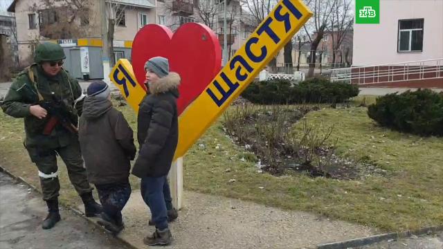 Украинские военнослужащие сегодня утром покинули город Счастье. Населенный пункт полностью контролируется народной милицией Луганской народной республики.