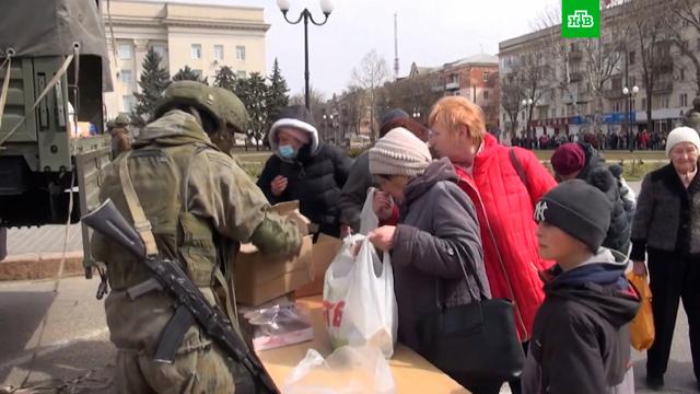 В Минобороны РФ сообщили, что российские военнослужащие организовали передачу гуманитарной помощи для жителей Херсона.