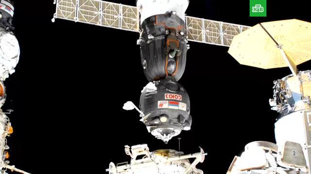 На борту корабля находятся космонавты «Роскосмоса» Антон Шкаплеров и Пётр Дубров, а также астронавт NASA Марк Ванде Хай. Примерно в 13:34 мск двигательная установка корабля будет включена на торможение. Приземление спускаемого аппарата ожидается в 147 км