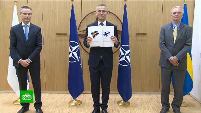 Послы Швеции и Финляндии официально вручили генеральному секретарю НАТО Йенсу Столтенбергу заявки на вступление в альянс. Церемония передачи заявок транслировалась на сайте НАТО.