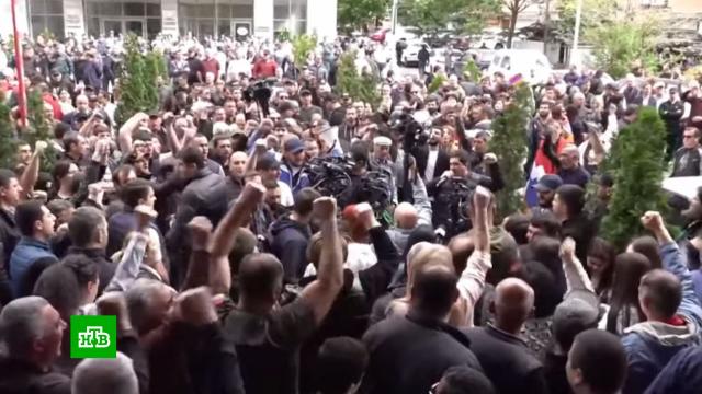 Утром в Ереване несколько тысяч протестующих заблокировали здание МИД Армении. Сторонники оппозиции прорвали оцепление полиции.