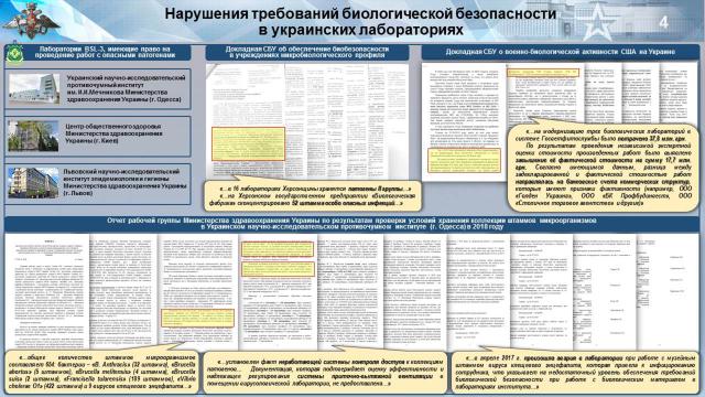 В докладной на тему «Обеспечение биологической безопасности в отечественных учреждениях микробиологического профиля, предотвращение проявлений биологического терроризма на Украине», в числе прочего, указывалось, что «в последнее время актуализировалась потенциальная угроза эпидемиологической и эпизоотической ситуации в нашем государстве, обусловленная попытками Агентства по снижению биологической угрозы Министерства обороны США (через компанию Black & Veatch Special Projects Corp.) установить контроль за функционированием микробиологических лабораторий Украины по исследованию патогенов особо опасных инфекционных заболеваний, которые могут быть использованы для создания или модернизации новых типов биологического оружия».