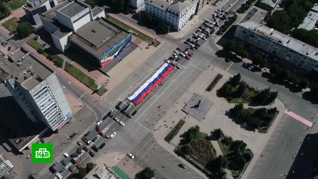 Концерты, праздничные митинги, народные гулянья прошли накануне и в Луганске. На центральном проспекте растянули российский флаг и автомобилями выстроили фразу «Вместе мы Россия».