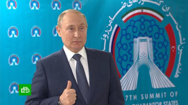 Напомним, встреча в астанинском формате состоялась сегодня в столице Ирана. Лидеры трех стран приняли совместное заявление. В документе говорится об укреплении трехстороннего сотрудничества для достижения нормализации ситуации в Сирии. Также в Тегеране Владимир Путин провел двусторонние переговоры с лидерами Ирана и Турции.