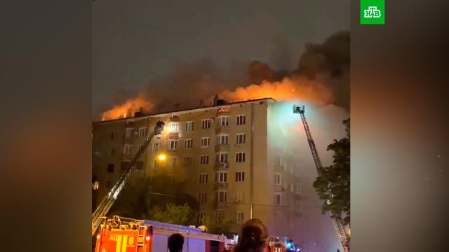 Пожар произошел на крыше жилого дома недалеко от Воробьёвых гор в Москве. По последним данным, площадь возгорания составляет 1 тыс. кв. метров.