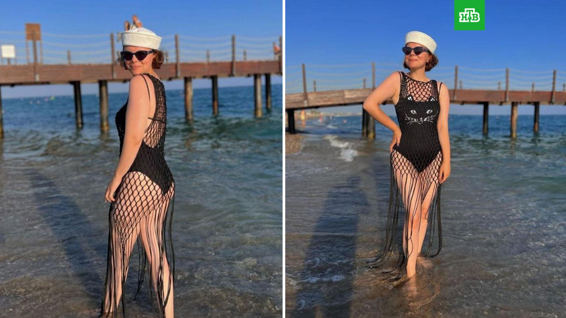 На них Брухунова позирует в черном слитном купальнике.