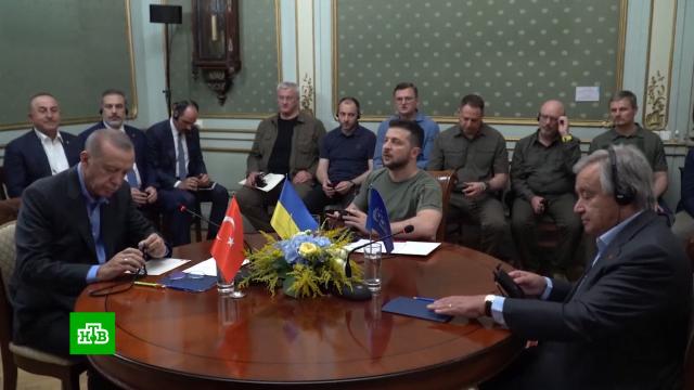 Встреча президента Турции Тайипа Эрдогана, президента Украины Владимира Зеленского и генсека ООН Антониу Гутерриша во Львове, длившаяся 40 минут, завершилась, сообщает портал Haberturk.