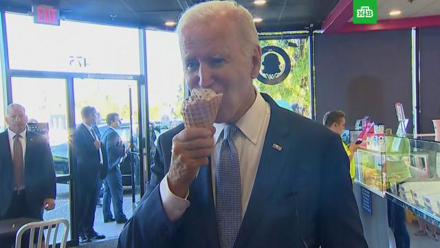 Президент США Джо Байден купил мороженое и сделал заявление о сильной экономике своей страны, поедая его. Соответствующий ролик появился в соцсетях.