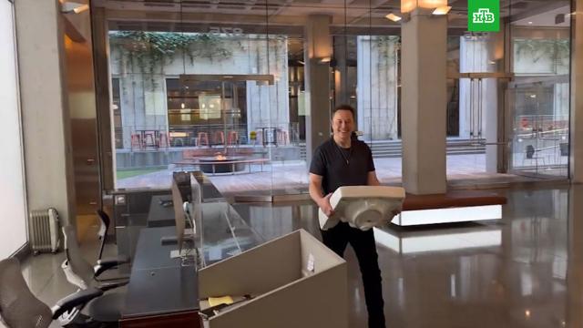 Миллиардер Илон Маск появился в офисе компании Twitter в Сан-Франциско с раковиной в руках.