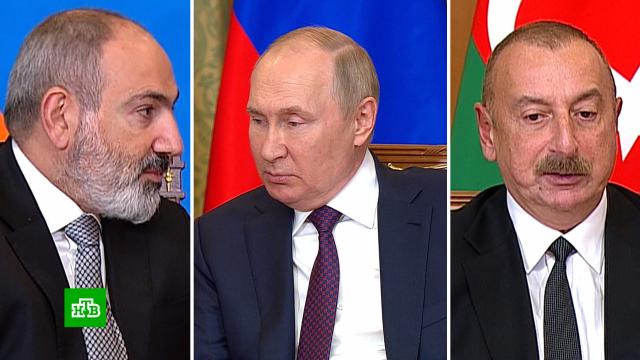 Лидеры Армении и Азербайджана при посредничестве российского президента обсудили реализацию трехсторонних договоренностей по укреплению стабильности и безопасности в Закавказье.