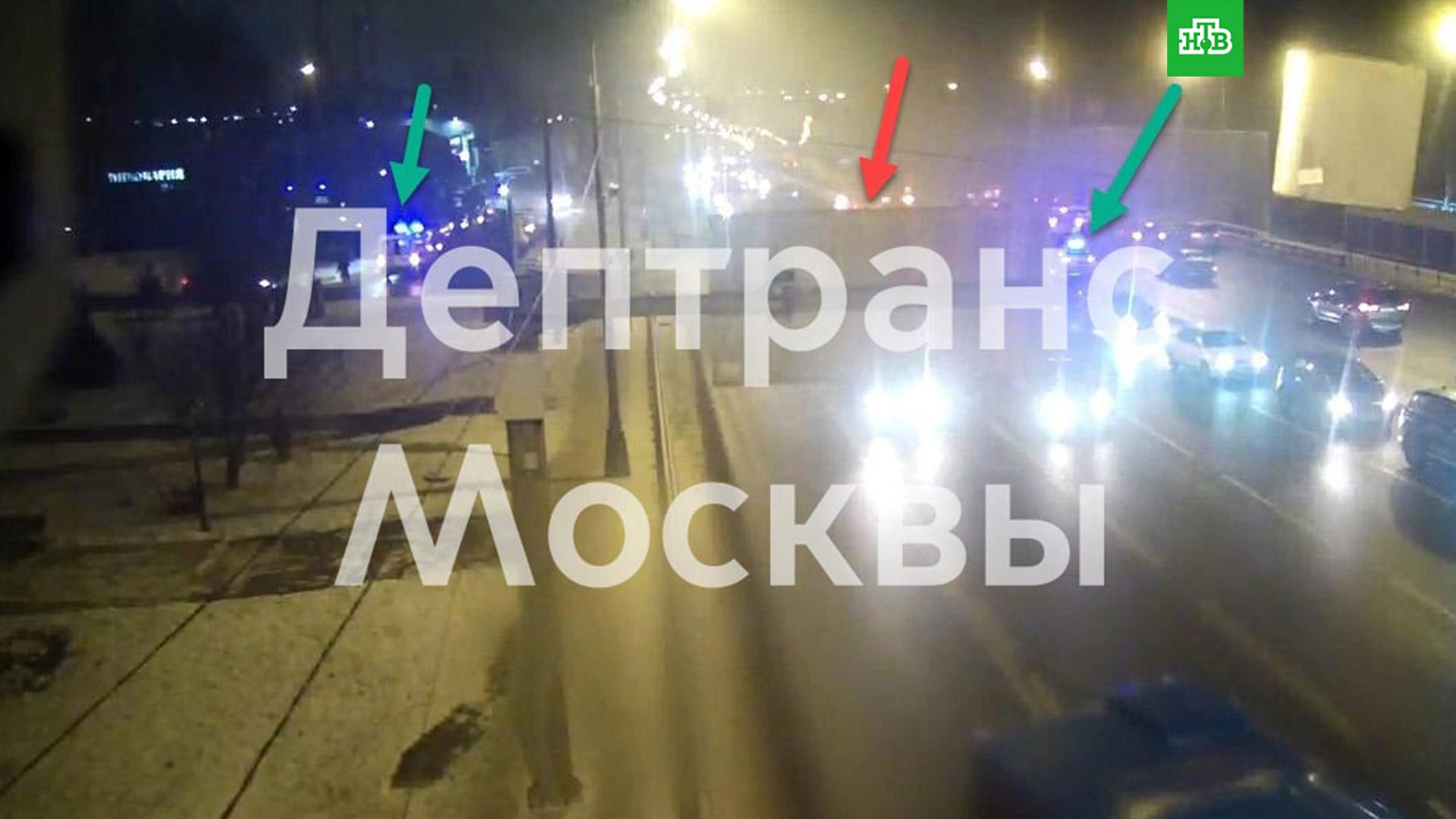 На Калужском шоссе в Москве столкнулись несколько автомобилей. После этого одна машина загорелась.