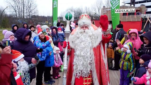 Всероссийский Дед Мороз заглянул в Центральный детский магазин на Лубянке на выступление юных артистов для детей и пообщался там с репортерами программы НТВ «Однажды».